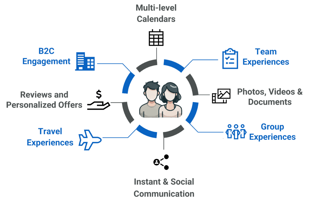 Customers plan trips, events, appointments, and activities using a scattered mix of apps — email, calendars, messaging, social platforms, documents, photos, tickets, itineraries.